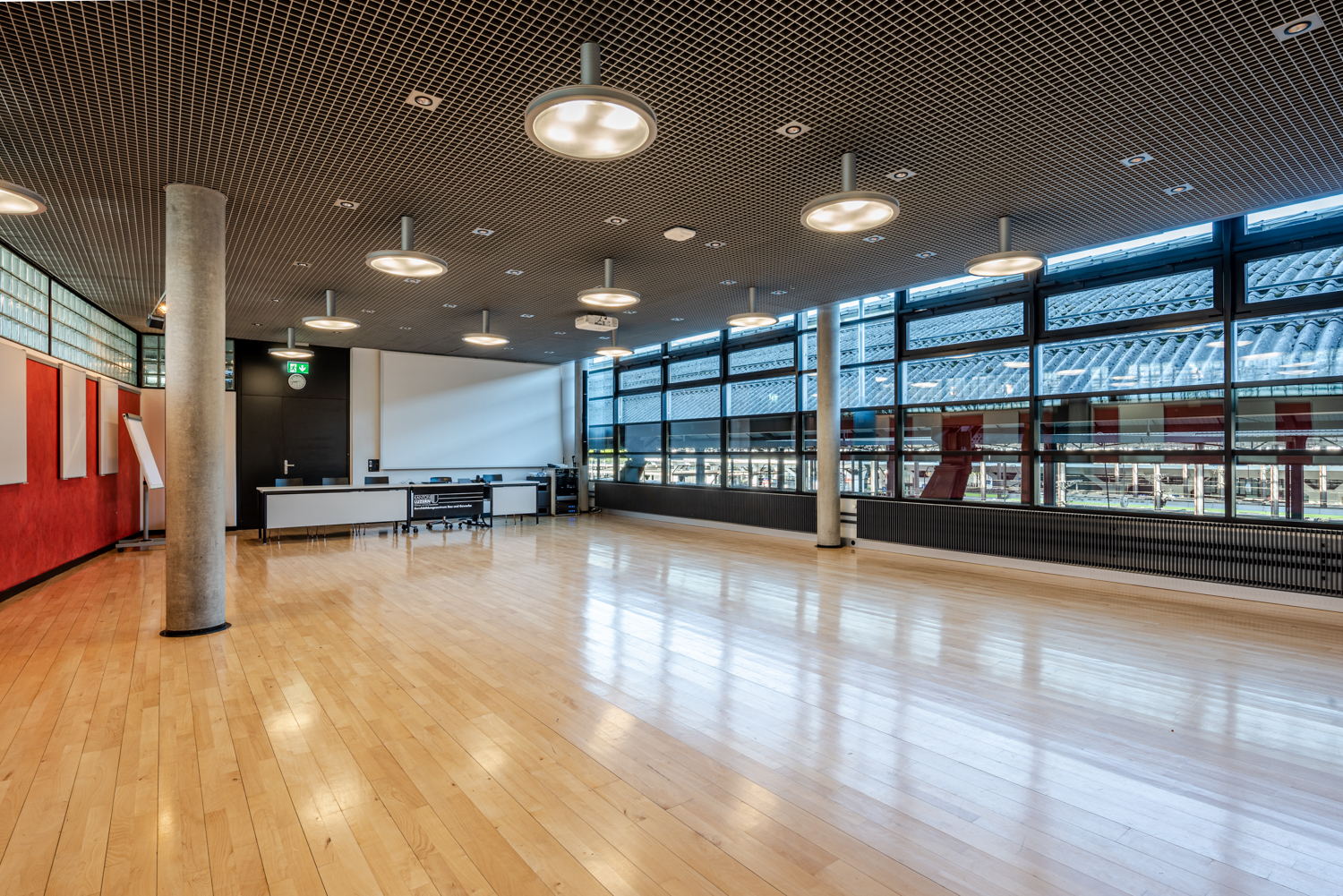 Unsere moderne Aula bietet Platz für bis zu 100 Personen und eignet sich ideal für Events, Vorträge oder Vorstellungen. Die flexible Ausstattung schafft Raum für kreative Veranstaltungen.